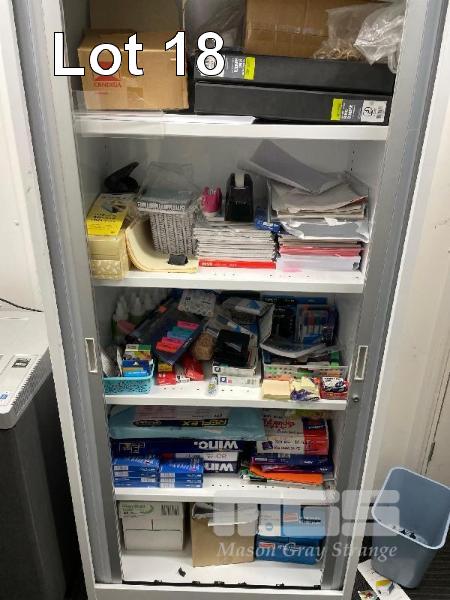 FORDIGRAPH PAPER SHREDDER, MOD: 311105, 240V 10amp, WITH TAMBOUR CABINET, 1800 x 900mm & CONTENTS, LARGE QTY OFFICE STATIONERY
