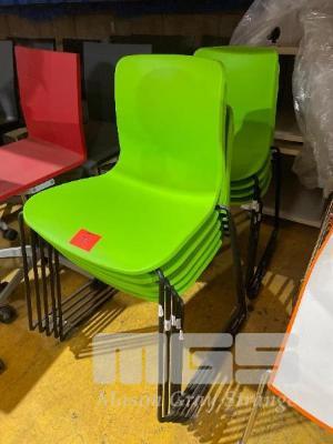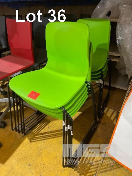 9 x NEON GREEN CHAIRS, STACKABLE, BLACK STEEL FRAME