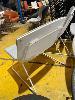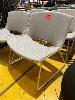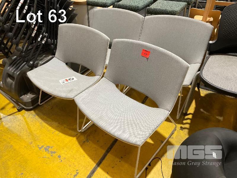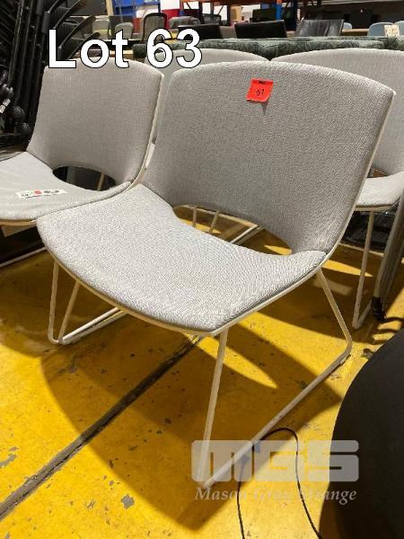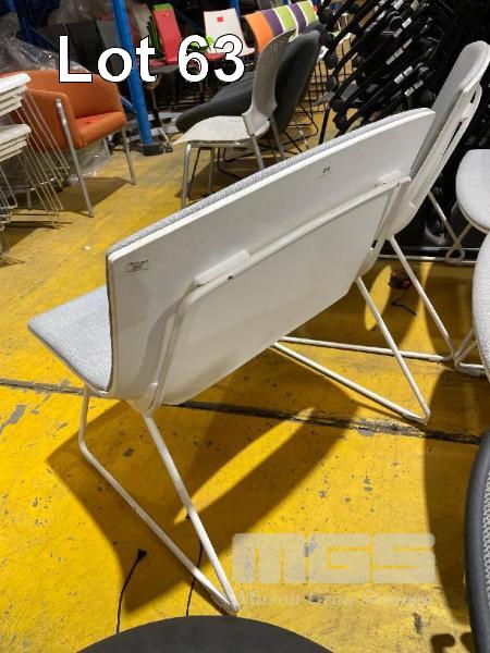 4 x WIDE SEAT VISITORS CHAIRS, LIGHT GREY CLOTH, WHITE STEEL FRAME