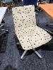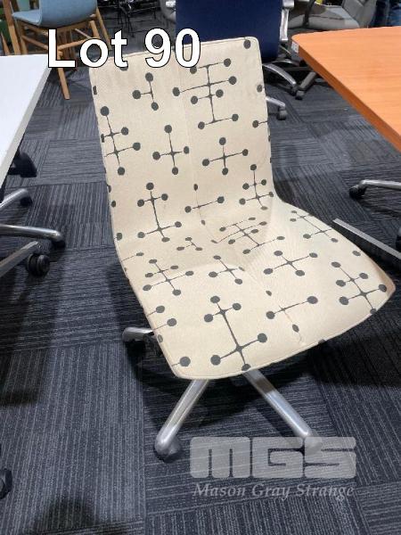 BOARD ROOM TABLE, CURVED EDGES, TIMBER LAMINATE, CHROME FRAMEW, 2420 x 1220mm, 8 x PATTERN CLOTH GAS LIFT CHAIRS, BEIGE & BLACK