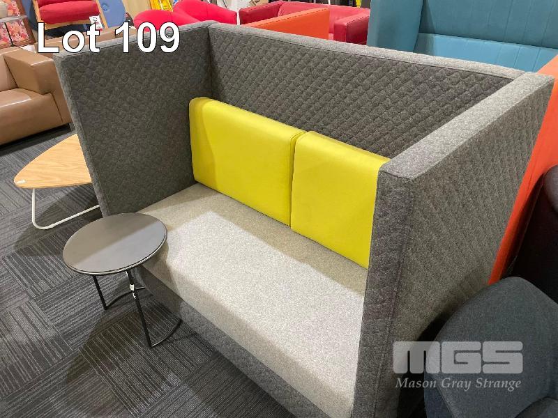 PAIR BOOTH SEATS, GREY/LIME GREEN, 1600 x 840 x 1200mm
