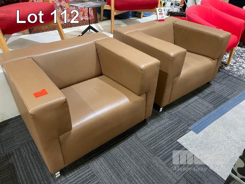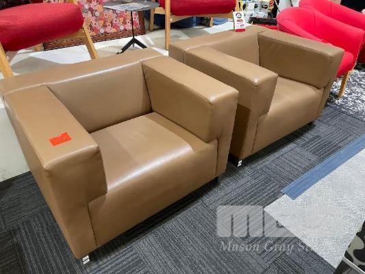 4 x BROWN LEATHER SINGLE SEAT COUCH CHAIRS, STEEL FEET