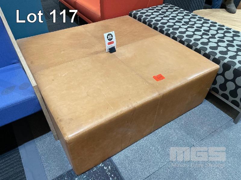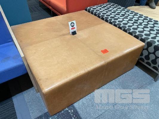 BROWN LEATHER SQUARE OTTOMAN, 1200 x 1200 x 400mm