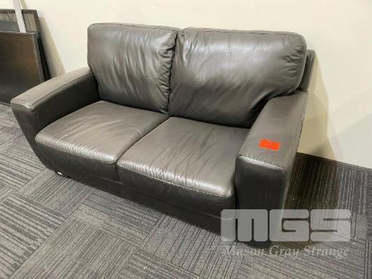 2 SEATER BLACK LEATHER SOFA, 1550mm (L)