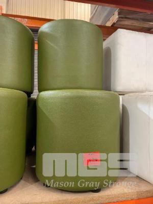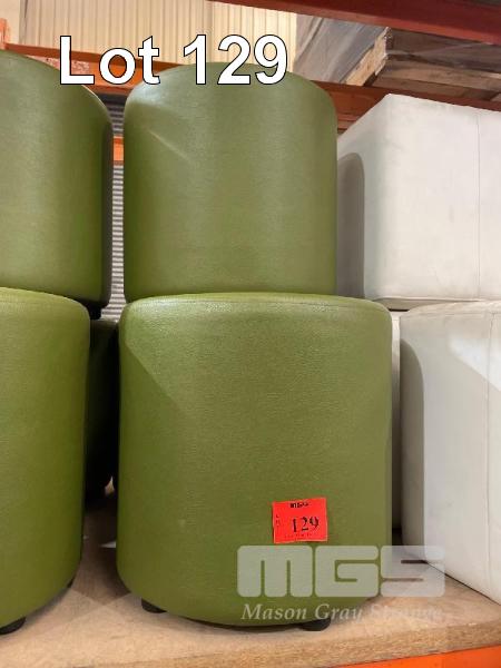 3 x OLIVE GREEN LEATHER CIRCULAR OTTOMANS, 440 x 440mm (D)