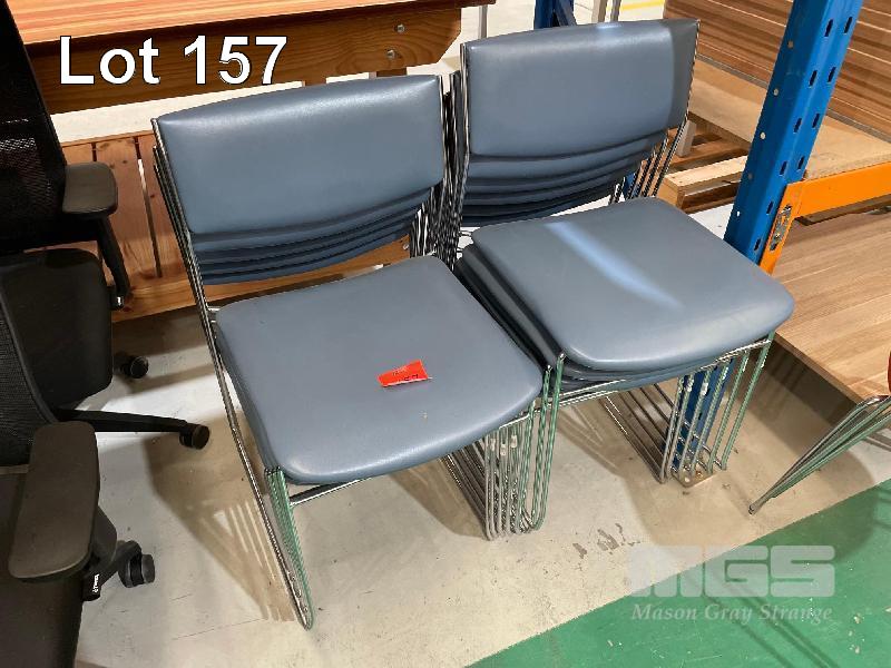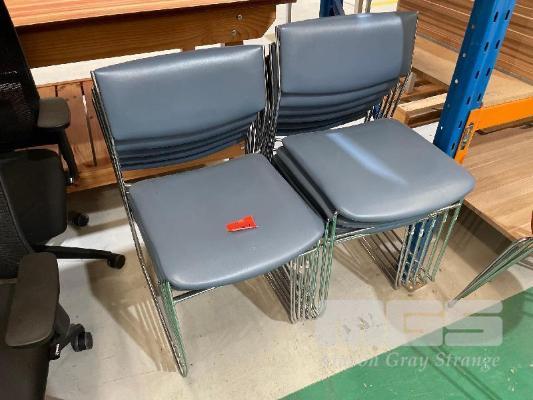 10 x BLUE VINYL RETRO STACKABLE CHAIRS, CHROME