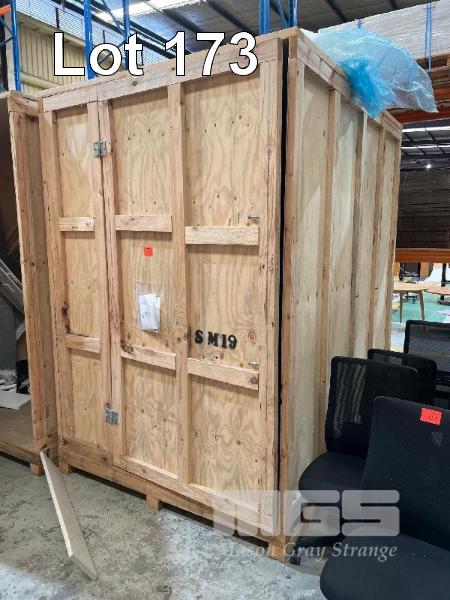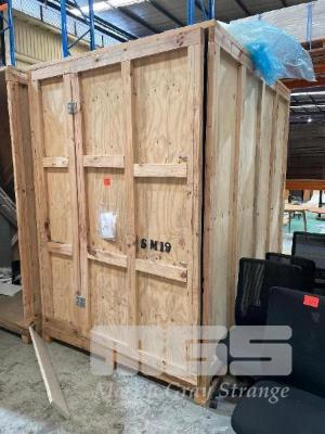 LARGE PINE TIMBER SHIPPING/STORAGE CRATE, 1800 x 2400 x 2630mm (H), SINGLE DOOR, BOLTED FRAME, FORK POCKETS