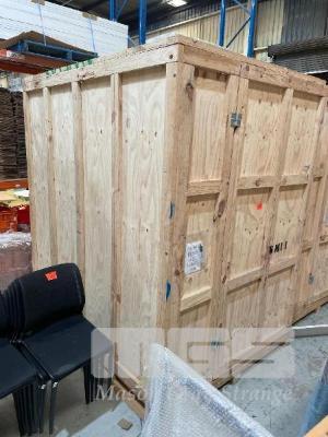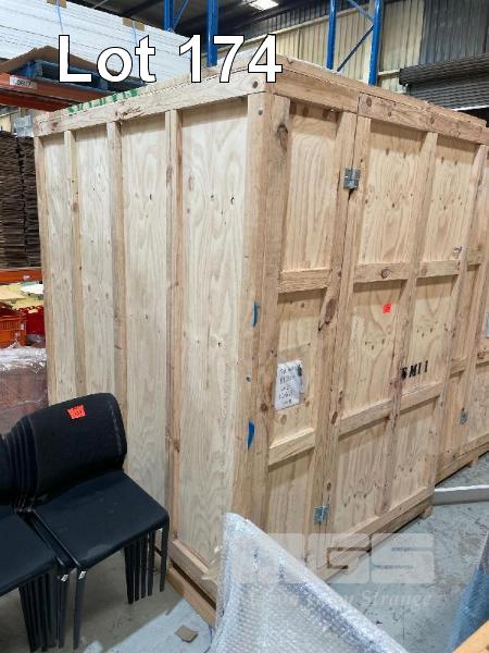 LARGE PINE TIMBER SHIPPING/STORAGE CRATE, 1800 x 2400 x 2630mm (H), SINGLE DOOR, BOLTED FRAME, FORK POCKETS