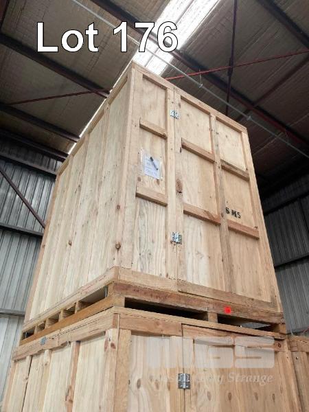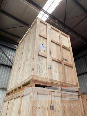 LARGE PINE TIMBER SHIPPING/STORAGE CRATE, 1800 x 2400 x 2630mm (H), SINGLE DOOR, BOLTED FRAME, FORK POCKETS