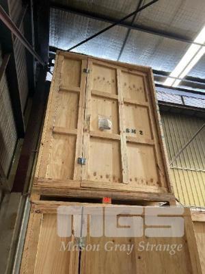 LARGE PINE TIMBER SHIPPING/STORAGE CRATE, 1800 x 2400 x 2630mm (H), SINGLE DOOR, BOLTED FRAME, FORK POCKETS