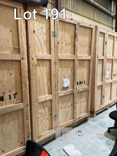 LARGE PINE TIMBER SHIPPING/STORAGE CRATE, 1800 x 2400 x 2630mm (H), SINGLE DOOR, BOLTED FRAME, FORK POCKETS