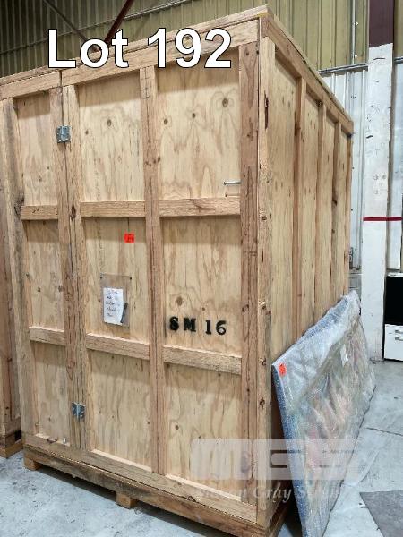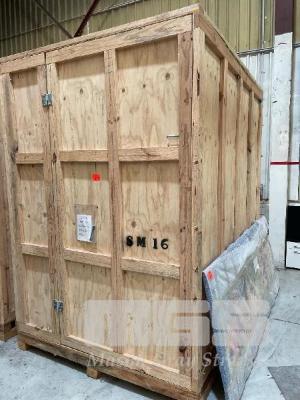 LARGE PINE TIMBER SHIPPING/STORAGE CRATE, 1800 x 2400 x 2630mm (H), SINGLE DOOR, BOLTED FRAME, FORK POCKETS