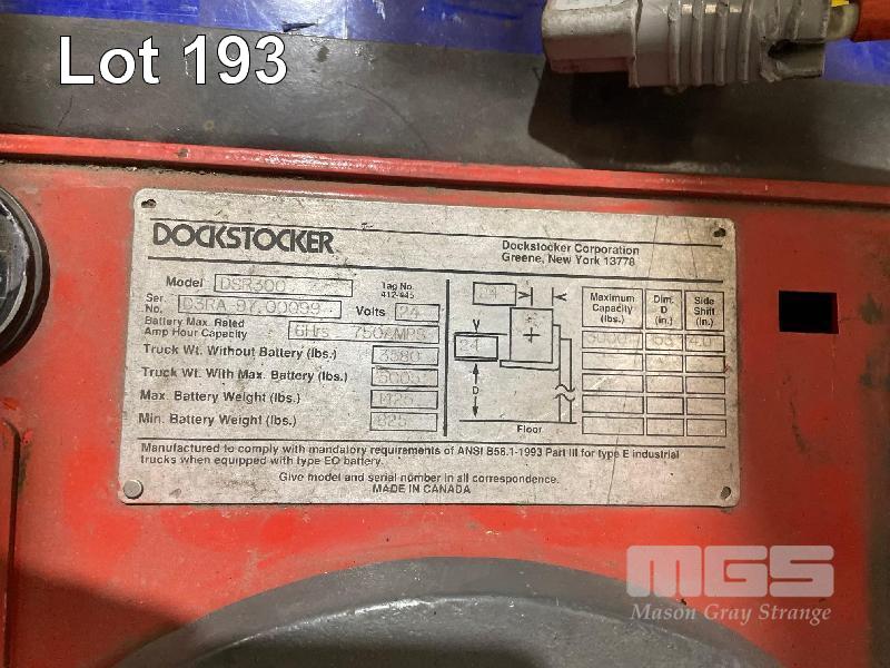 RAYMOND ELECTIC WALKIE STACKER, MOD: DSR300, SERIAL: D3RA-9700099, CAP: 3000LB, SIDE SHIFT & TILT, ALL FAULTS, NOT RUNNING WITH BATTERY CHARGER 240V 15AMP