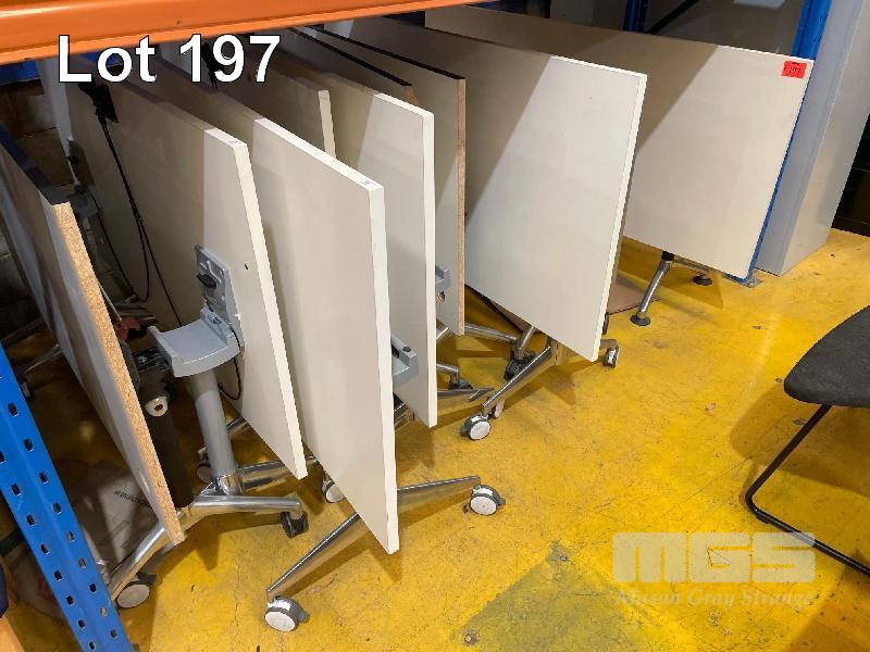 10 x ASSORTED TIMBER LAMINATE TILTING TOP DESKS, WHITE
