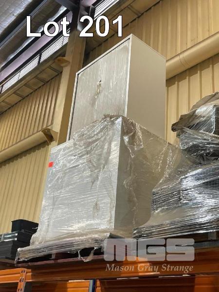 3 x WHITE TAMBOUR CABINETS, 1000 x 900mm