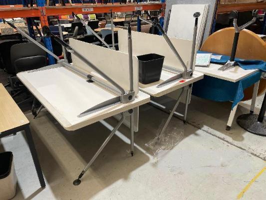 8 x WHITE TIMBER LAMINATE DESKS, 1800 x 900mm & 2000 x 900mm (NOT MATCHING)