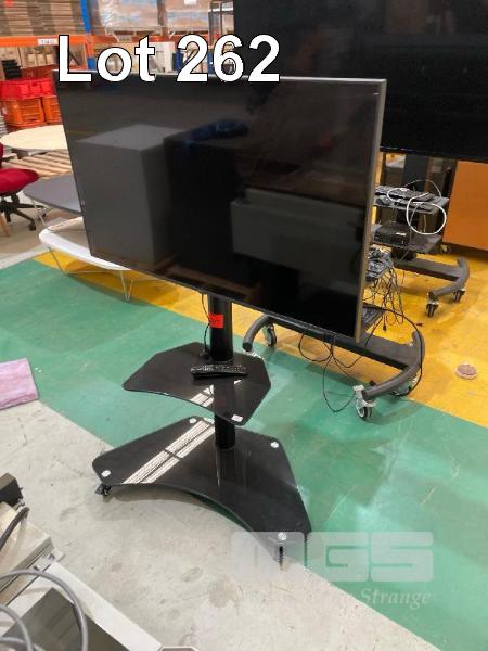 LG 43" SMART TV, MOD: 43UT8050P5B, ON MOBILE STAND WITH REMOTE