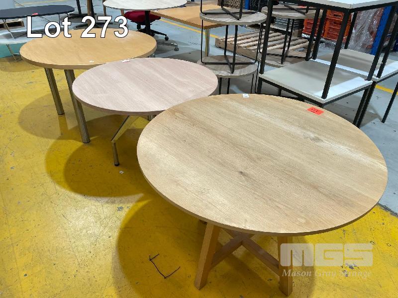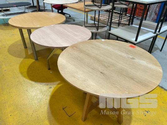 3 x CIRCULAR TABLES, 1000mm (D), 900mm (D) & 1100mm (D)