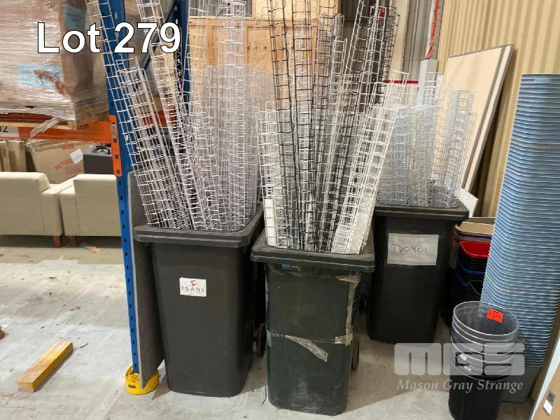LARGE QTY PAPER BASKETS & WIRE CABLE RUNNERS (5 x WHEELIE BINS)