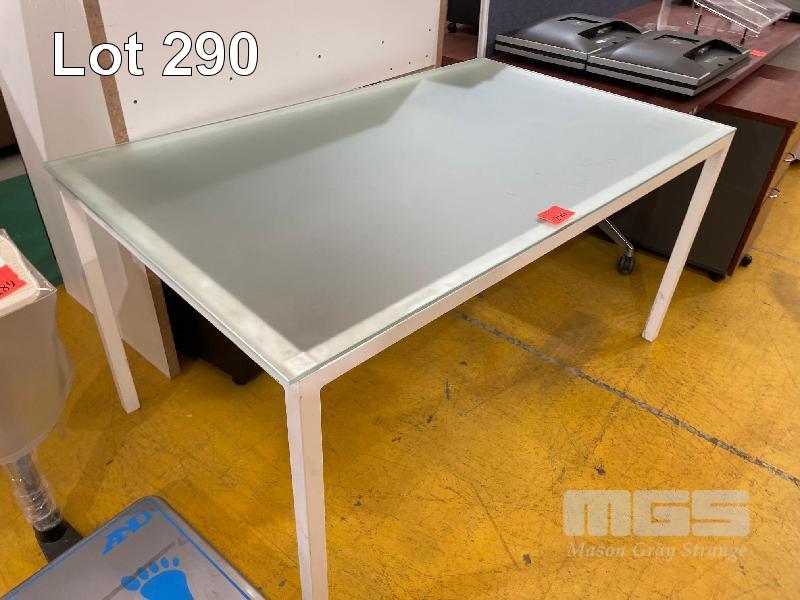 GLASS TOP TABLE, 1500 x 900mm, WHITE STEEL FRAME