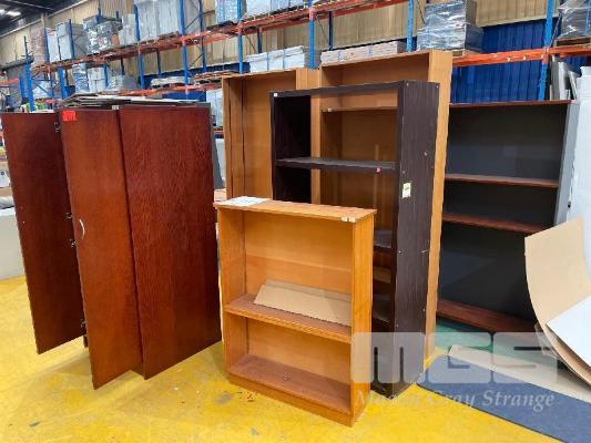 ASSORTED TIMBER LAMINATE BOOK SHELVES, VARIOUS CONDITION