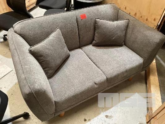 GREY CLOTH 2 SEATER LOUNGE, WITH BLACK STEEL PLANTER POT, 730mm (H)
