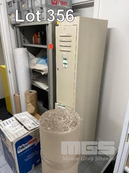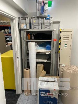 STEEL TAMBOUR CABINET & CONTENTS, 1800 x 900 x 500mm, BUBBLE WRAP, PAPER PACKAGING ETC. + 2 DOOR STEEL LOCKER