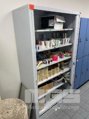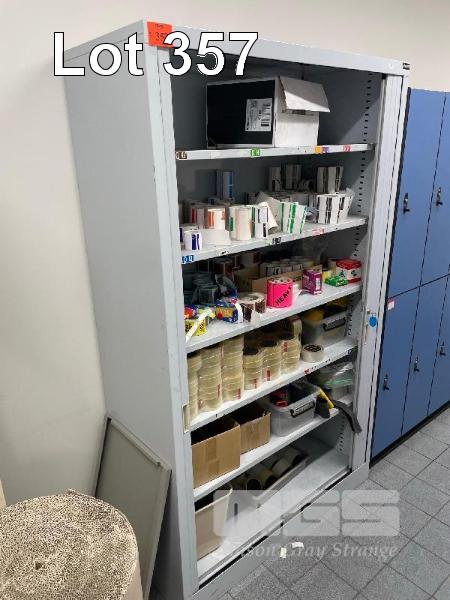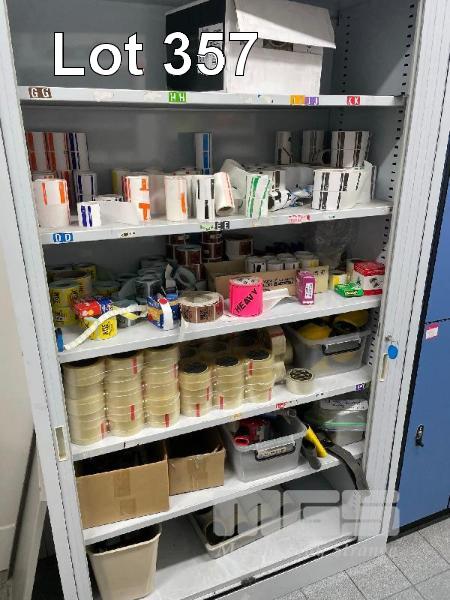 STEEL TAMBOUR CABINET, 2000 x 1000 x 500mm & CONTENTS, STICKY TAPE, STICKER LABELS & TAPE GUNS