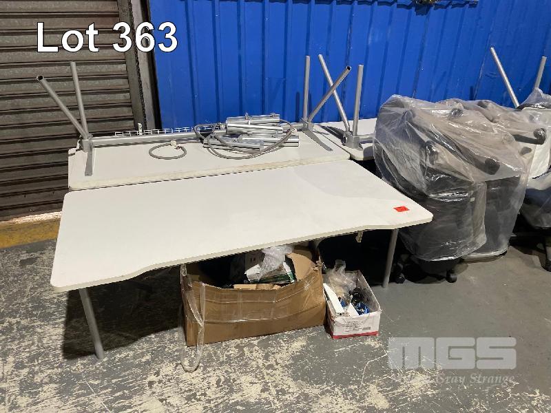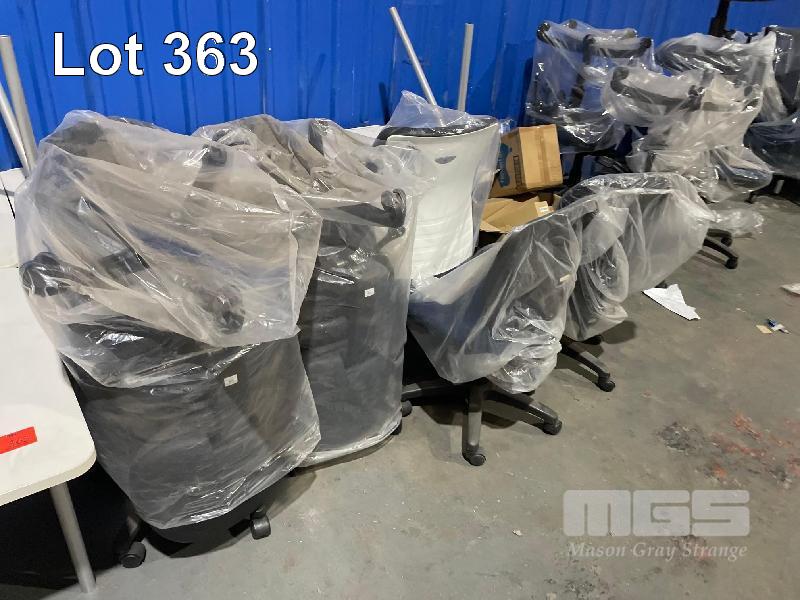13 x ASSORTED GAS LIFT CHAIRS, 5 x WHITE TIMBER LAMINATE DESK, 1800 x 900mm