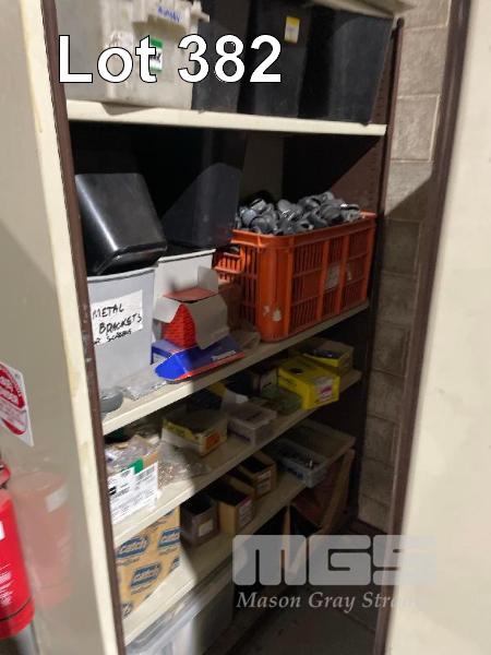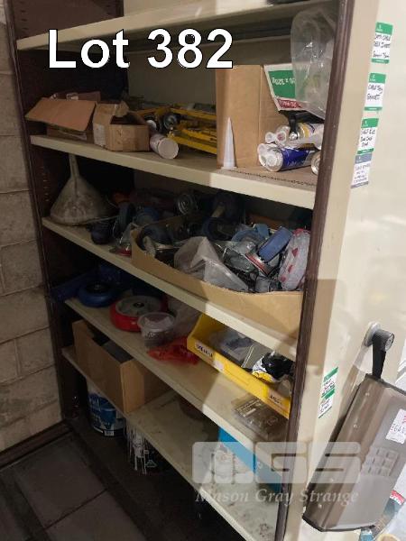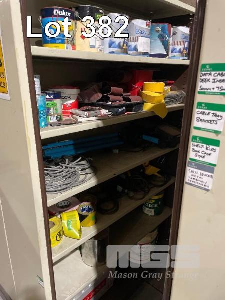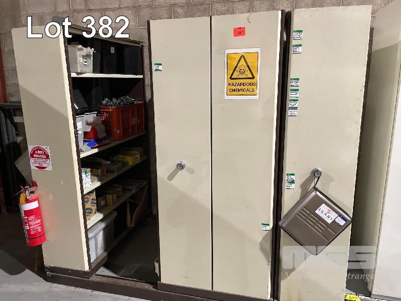 4 BAY COMPACTUS, 430 x 1260 x 2000mm (H) & CONTENTS, CASTOR WHEELS, SILICONES, PAINT, SANDPAPER, HARDWARE ETC.