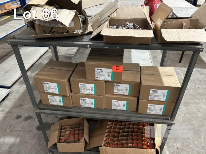 FIRE SPRINKLER HEADS, VIKING TYPE: 23869JNE 9 x BOXES, 50 UNITS/BOX WITH FIRE SYSTEM MULTI SPRAY NOZZLES, FIRE KILL APS, TYPE: K6 2 xBOXES, 25/BOX, PIPE CLAMPS, STAINLESS STEEL & ASSORTED FIRE SYSTEM COMPONENTS 3 x SHELVES