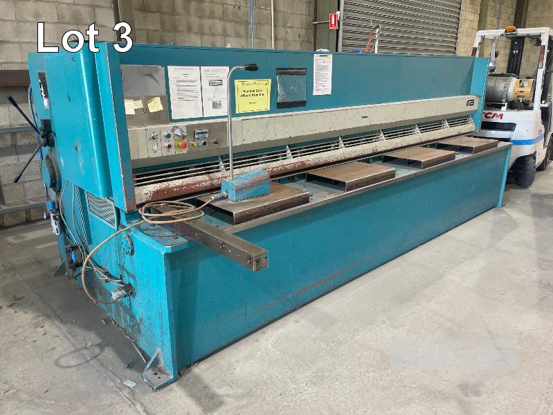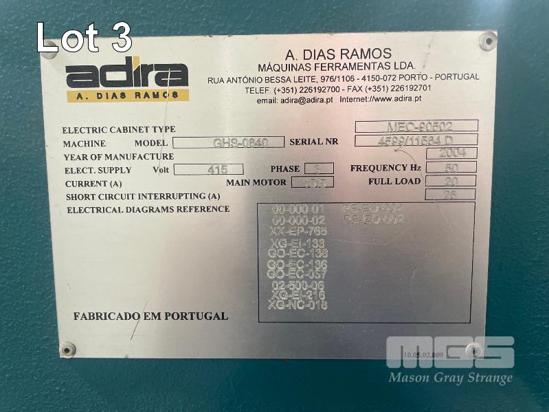 ADIRA GUILLOTINE, MOD: GHS-0640, SERIAL: 4599/11564D, DOM: 2004, 6.5mm x 4080mm CAP, FOOT CONTROL, POWERED BACK GAUGE, WITH KEYS, 415V 3 PHASE (DISCONNECTED) NOTE: MACHINE WEIGHT: 8.8 TONNE