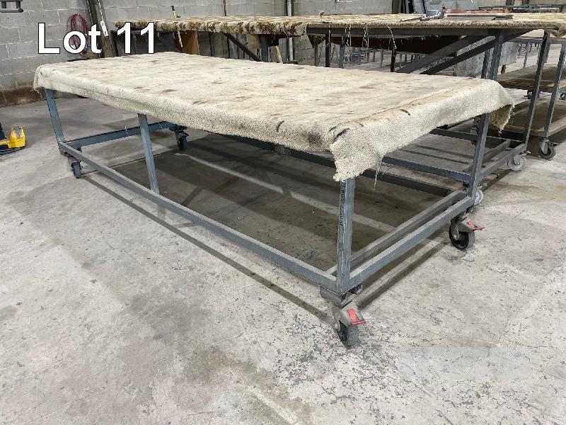 STEEL FRAME LAYOUT BENCH, MOBILE, SCRATCH PROOF CARPET TOP, LOCKING CASTORS, 2850 x 1150 x 850mm