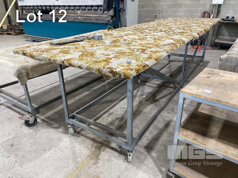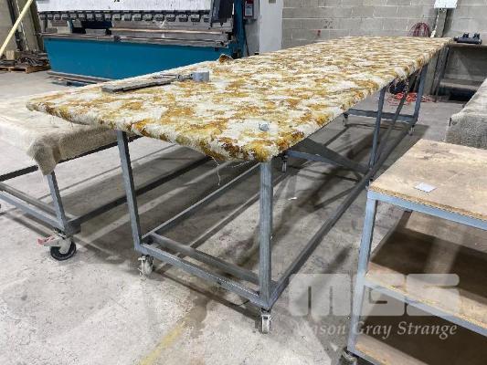 STEEL FRAME LAYOUT BENCH, MOBILE, SCRATCH PROOF CARPET TOP, LOCKING CASTORS, 4360 x 1220 x 1080mm