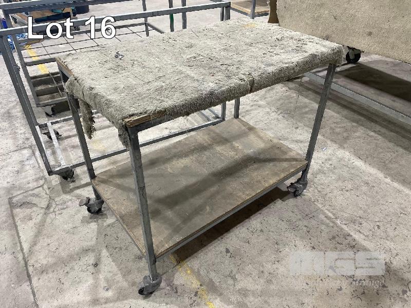 STEEL FRAME LAYOUT BENCH, MOBILE, SCRATCH PROOF CARPET TOP, LOCKING CASTORS, 1000 x 600 x 850mm