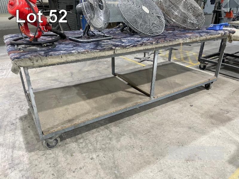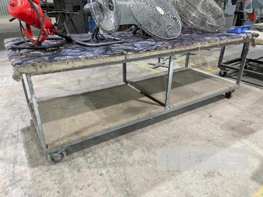 STEEL FRAME LAYOUT BENCH, MOBILE, SCRATCH PROOF CARPET TOP, LOCKING CASTORS, 2900 x 1200 x 1000mm (H)