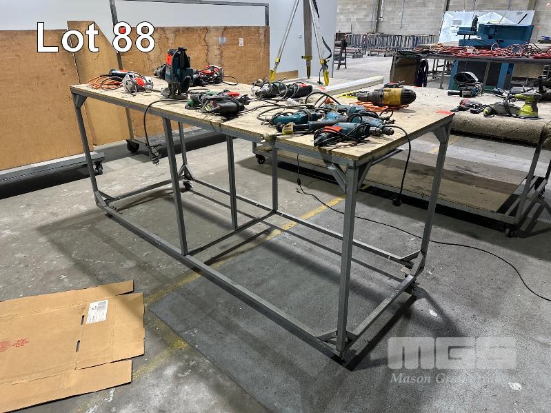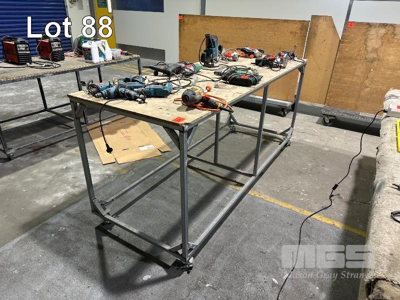 MOBILE WORK BENCH, STEEL, CHIPBOARD 2400 x 900 x 1060mm