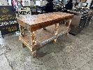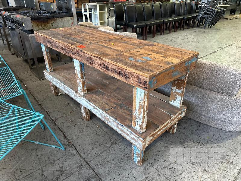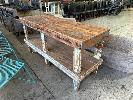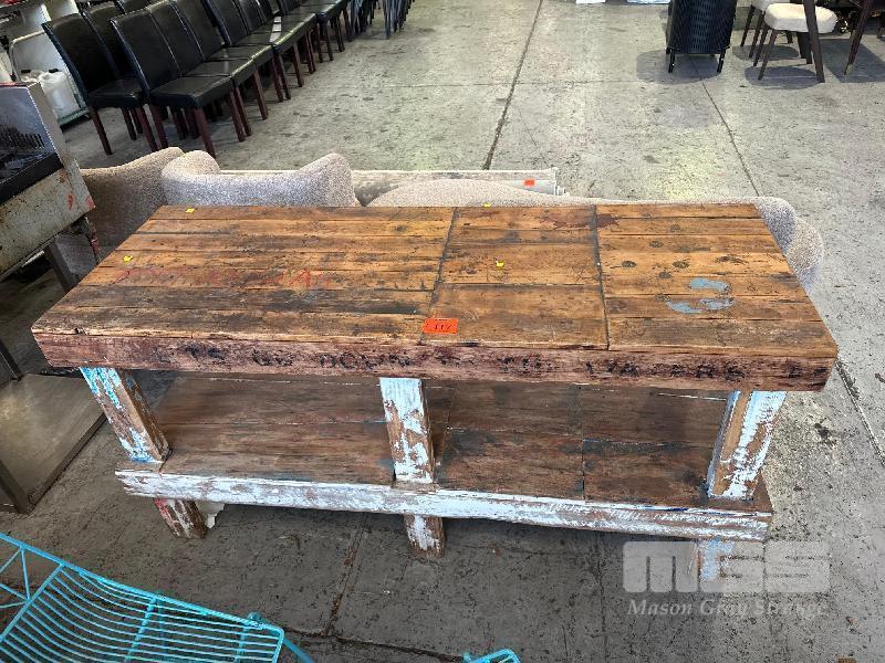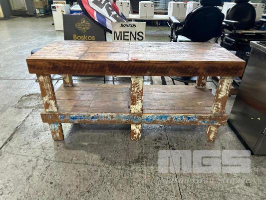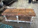 ANTIQUE TIMBER BENCH WITH DECORATIVE SUNKEN PENNIES, 1670 x 610 x 840mm (H)