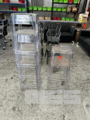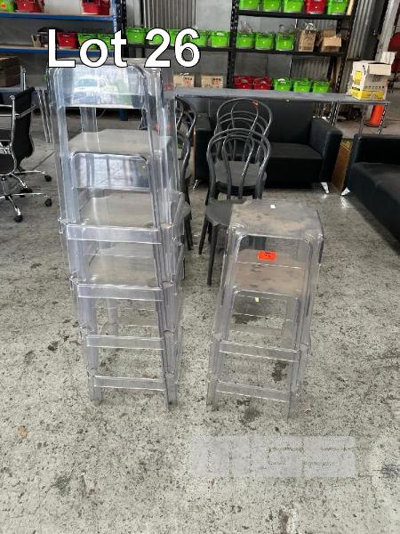 6 x CLEAR PLASTIC BAR STOOLS, 660mm (H)