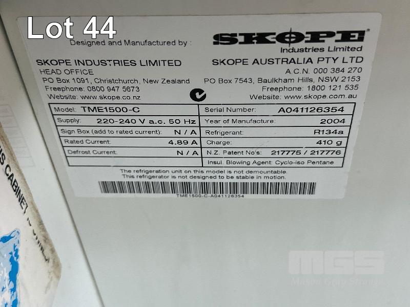DISPLAY FRIDGE, SKOPE MOD: TME1500-C DOM: 2004 3 DOOR, ILLUMINATED, DRO 240V, 10 AMP