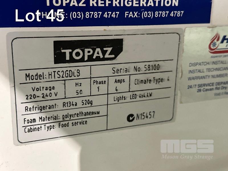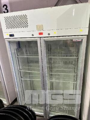 2 DOOR UPRIGHT DISPLAY FRIDGE, TOPAZ MOD: HTS2GDCB LED LIGHTS, DRO 240V 10AMP PLUG