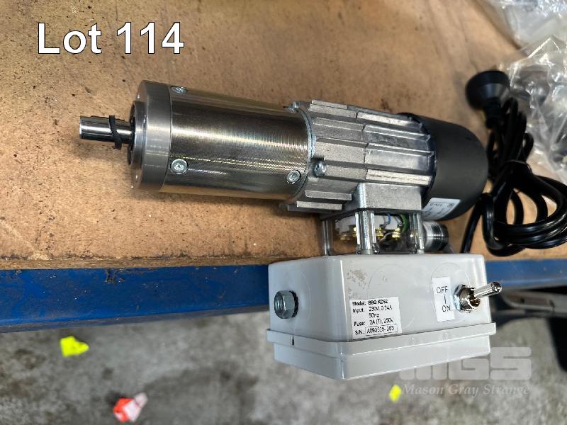 HIGH QUALITY BBQ SPIT MOTOR. DUNKERMOTOREN - AMETEK BBQ SPIT MOTOR, 240V (GERMAN MADE) GEARED DRIVE, WITH ABB CONTROL BOX, ON/OFF SWITCH 2600 RPM WITH 288:1 RATIO FINAL DRIVE: 9 RPM WITH PLUG & LEAD KEYWAY SHAFT, 12mm NEW!