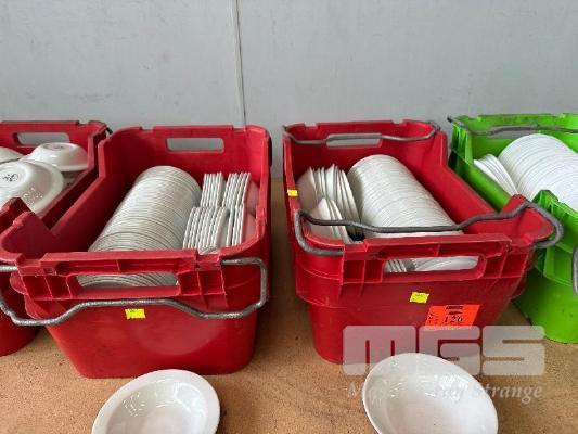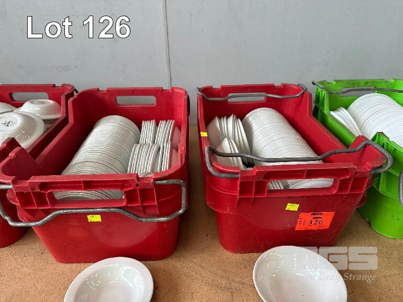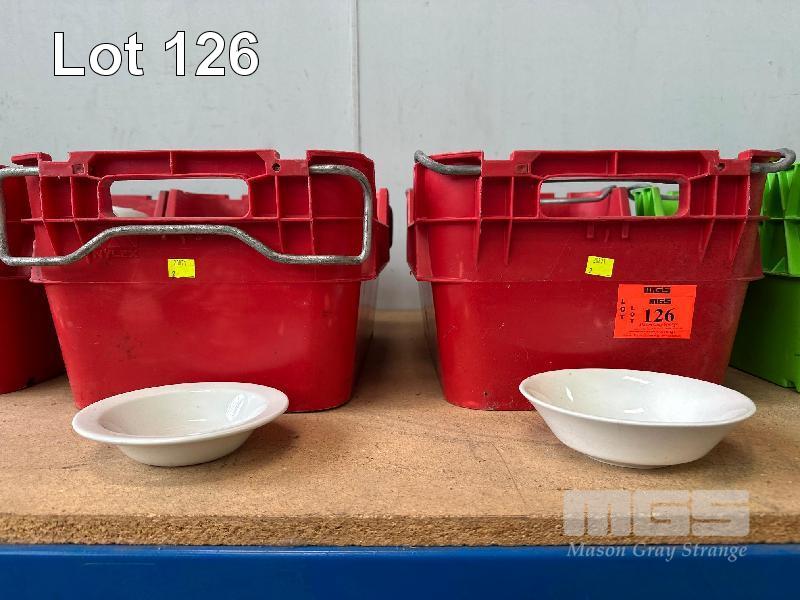 100 (APPROX) x SMALL SERVING BOWLS, 15cm 2 x CRATES