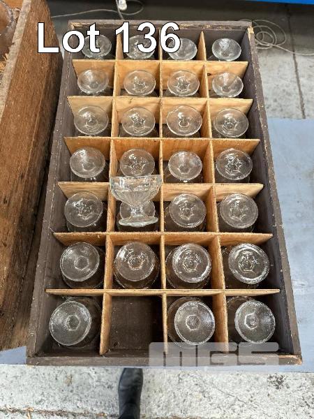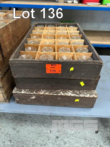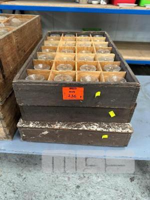 84 (APPROX) x GLASS DESSERT BOWLS 3 x TIMBER CRATES