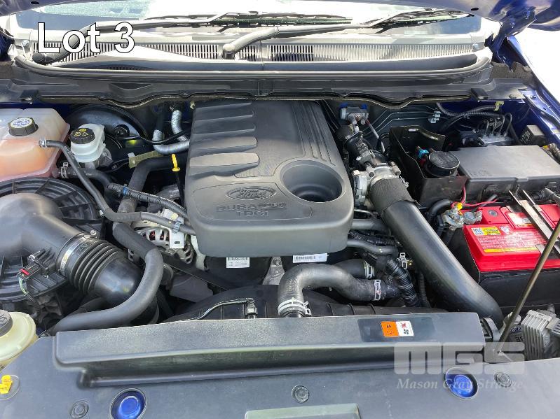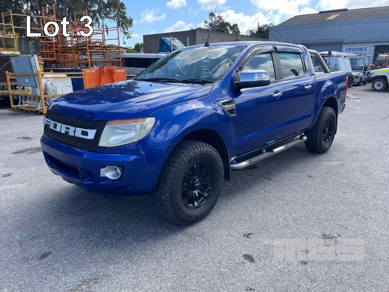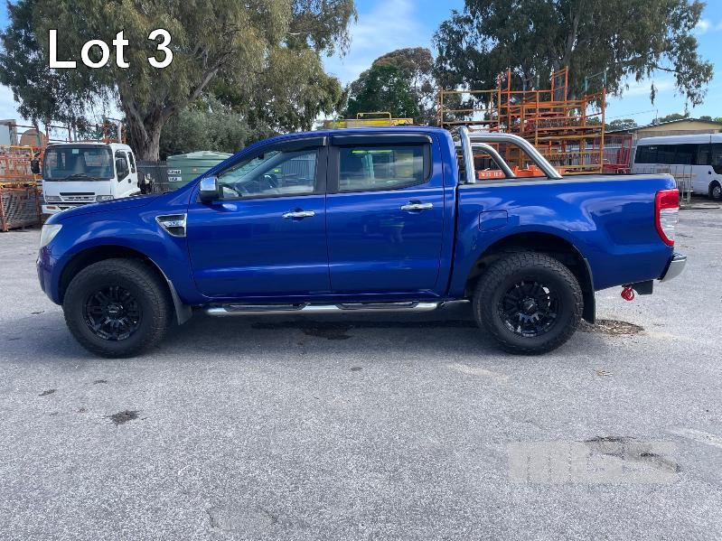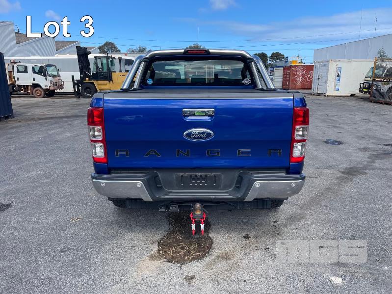 2014 FORD RANGER 2 PX DUAL CAB UTE 4X4 (PLEASE READ VEHICLE NOTES) REG: NO PLATES VIN: MNAUMFF50EW270964 ODO: 165,997kms SHOWING 3.2L DTFI DT5, 6 SPEED AUTO, DIESEL, BLUE, 4 DOORS, 4 SEAT, 4X4 (PLEASE READ VEHICLE NOTES) ABS, AIR CON, ALLOY WHEELS, CENTRAL LOCKING, CRUISE CONTROL, POWER STEERING, POWER WINDOWS, SIDE STEP, SPARE WHEEL, TOW BAR, TRACTION CONTROL, ELECTRIC ROLL TOP WITH REMOTE MECHANICS NOTE: "ON START UP NOTICED ENGINE NOISE - SUSPECT BENT CON ROD DUE TO WATER ENTERING CYLINDER THROUGH EGR COOLER - REQUIRES FURTHER INVESTIGATION" KEY #54 (WITH 2 KEY/S, WITH OWNER'S MANUAL, WITH SERVICE BOOKS)