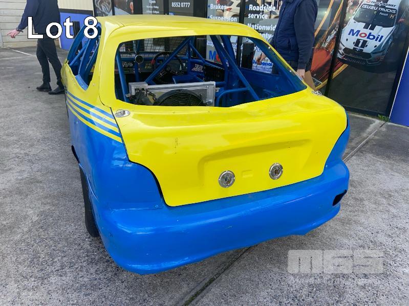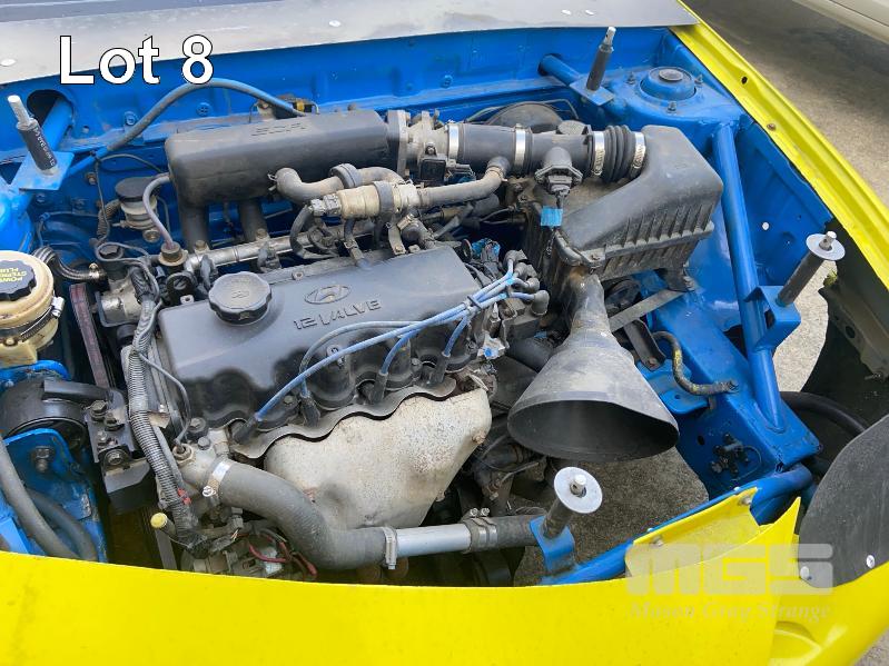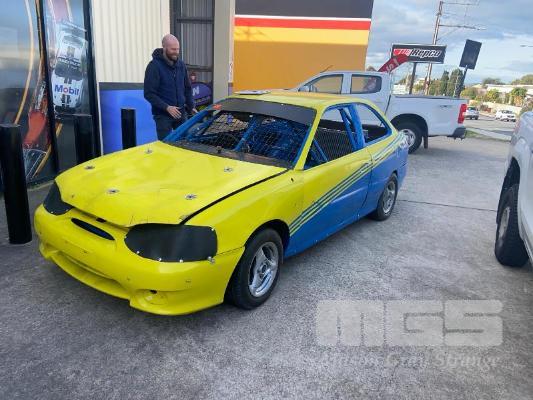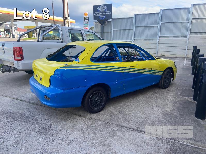 HYUNDAI EXCEL DIRT TRACK CAR, VIN: KMHUD11NPTU165213, PARTIAL FIBERGLASS BODY, MANUAL TRANSMISSION, ROLL CAGE, KILL SWITCH, REAR MOUNT RADIATOR, SEAT INCLUDED NOT INSTALLED, STARTS & RUNS
