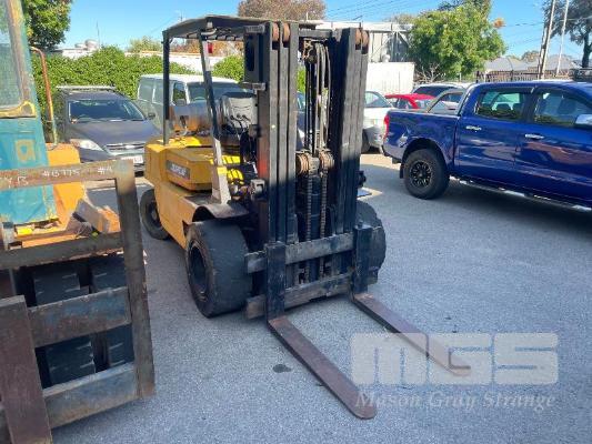 FORKLIFT, CATERPILLAR MOD: GPI40 4,000kg SOLID TYRES HOURS: 14,685 LPG 3 STAGE CONTAINER MAST KEY #57