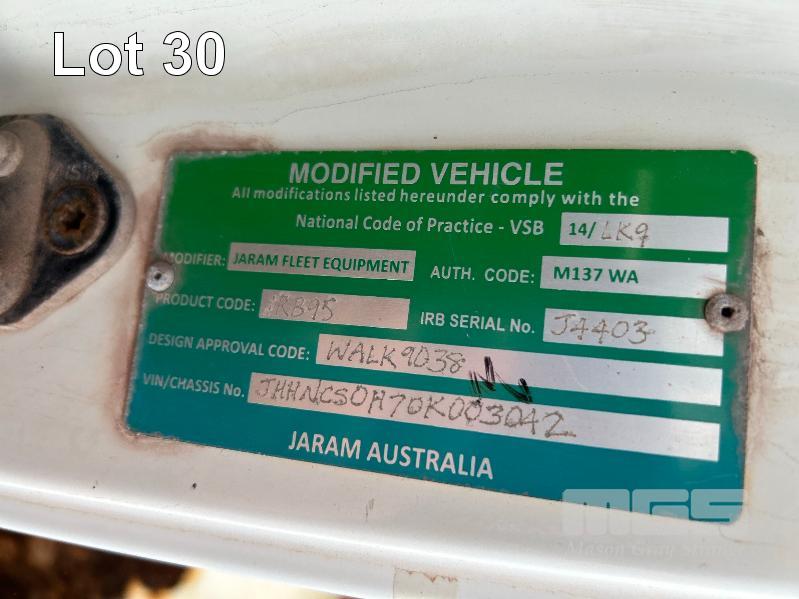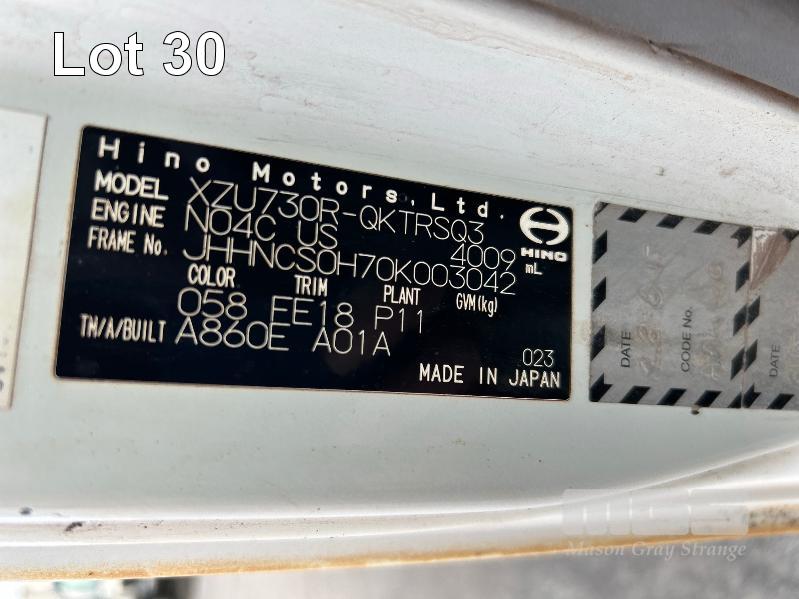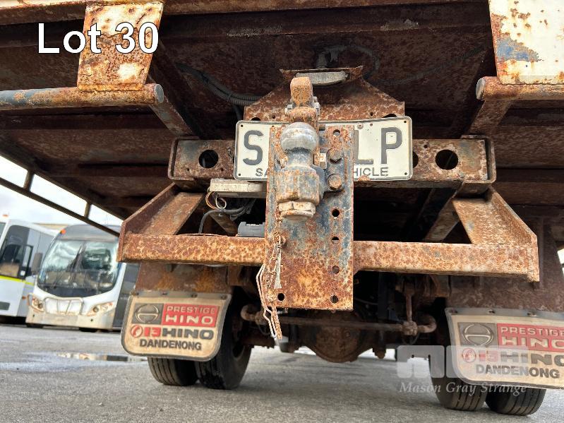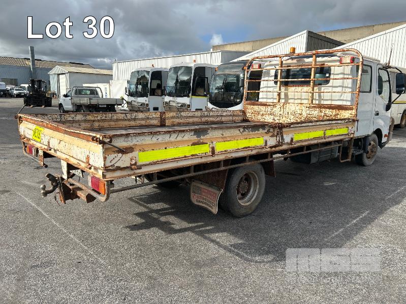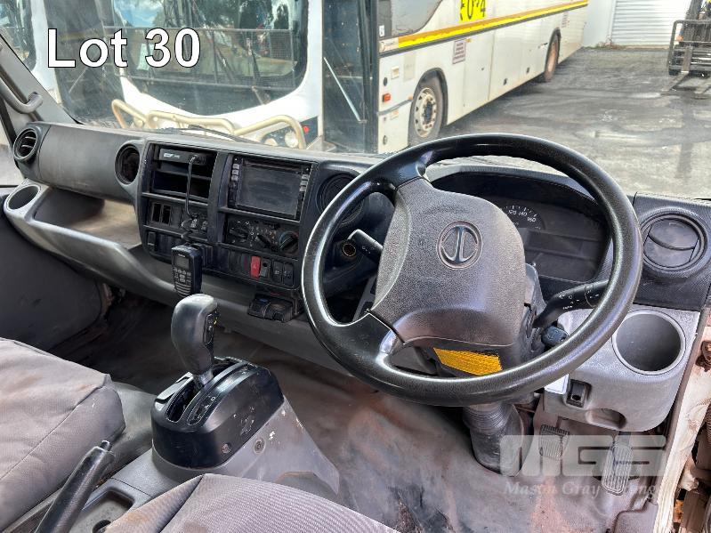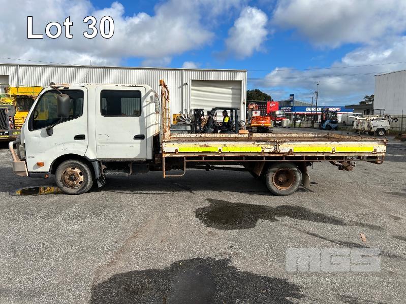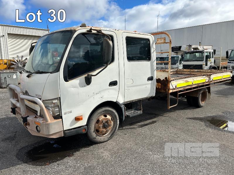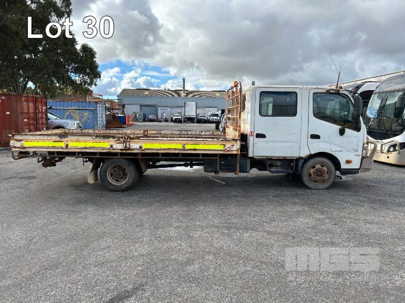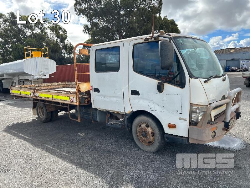 2013 HINO 300 SERIES, XZU730R, CREW CAB, TRAY TOP TRUCK, 4x2 REG: SB 20 LP (SA) VIN: JHHNCS0H70K003042 ENG: N04CU512603 ODO: 129,746kms SHOWING GVM: 7,300kg GCM: 7,300kg 4.0 LITRE TURBO DIESEL, AUTOMATIC TRANSMISSION, SPRING SUSPENSION, WHITE DUCO, 4 DOORS, 7 SEAT, AIR CON, CD PLAYER, STEEL TRAY, TRAY SIZE: 4400 x 2400mm WITH HINGED DROPED SIDES & REAR, TOW BALL, BATTERY ISOLATION SWITCHES 2 WAY RADIO KEY #15 (WITH PAPERS, WITH 1 KEY/S, WITH OWNER'S MANUAL) CONDITION: TRANSMISSION - ALL FAULTS, LEAKS