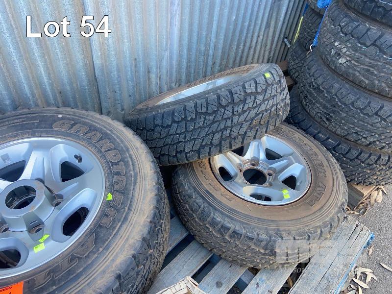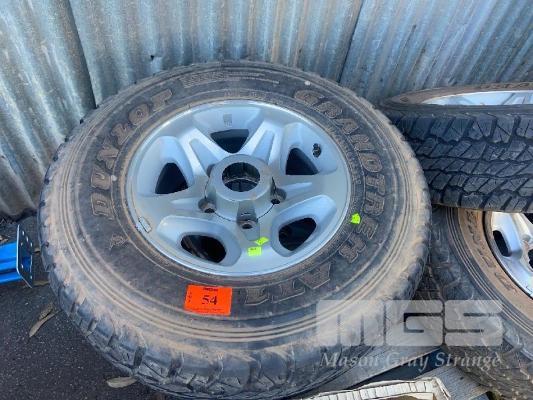 4 x TOYOTA 79 SERIES LANDCRUISER ALLOY RIMS, 5 STUD & TYRES, DUNLOP GRAND TREK ATI SIZE 265/70R16 115 R LT, WITH WHEEL NUTS
