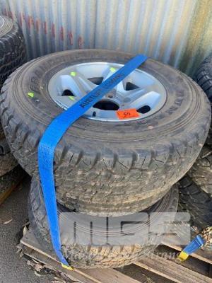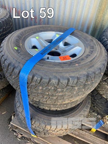 4 x TOYOTA 79 SERIES LANDCRUISER ALLOY RIMS, 5 STUD & TYRES, DUNLOP GRAND TREK ATI SIZE 265/70R16 115 R LT, WITH WHEEL NUTS
